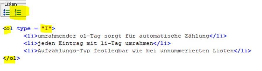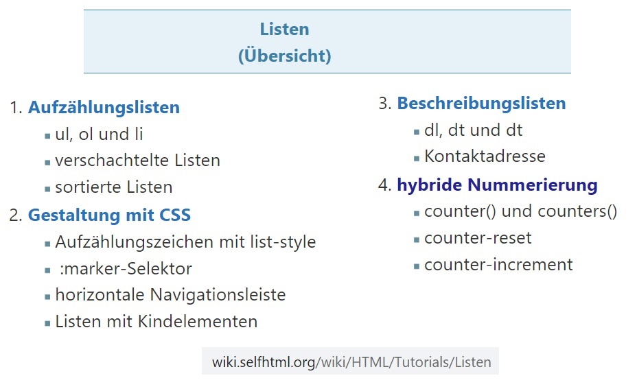 3. mehr zu Listen unter SELFHTML