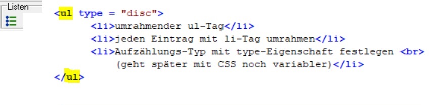 Listen bei SELFHTML